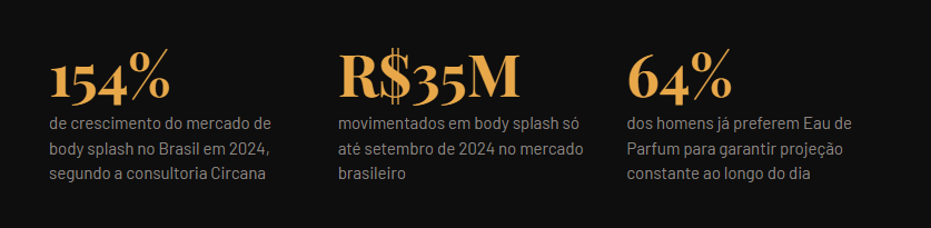 O mercado brasileiro de body splash cresceu 154% em um único ano. E esse crescimento foi puxado majoritariamente pelo público feminino. Mas os dados mostram que os homens estão chegando — 64% dos compradores masculinos de perfume já migram para concentrações mais pesadas, e a tendência de autocuidado masculino consciente é uma das mais fortes do segmento de beleza em 2026.
