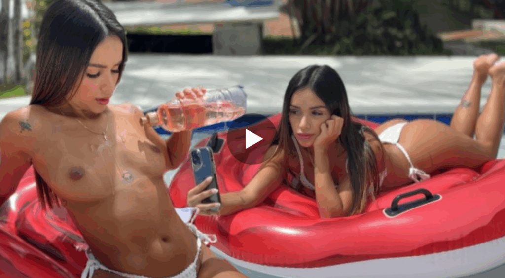 Criadora de conteúdo adulto peladinha tomando sol, queimando a pele e se masturbando molhadinha na piscina